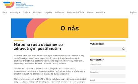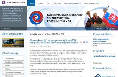 [1] In Slovakia, the Slovak Disability Council (NROZP) is the umbrella organisation representing organisations of persons with Disabilities in Slovakia and defends the rights and interests of persons with disabilities.